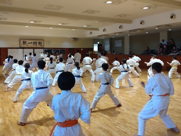 幼稚園生から学生・女子部・一般部・壮年部までの道場生が上の階級を目指して、一生懸命に審査に臨みました。